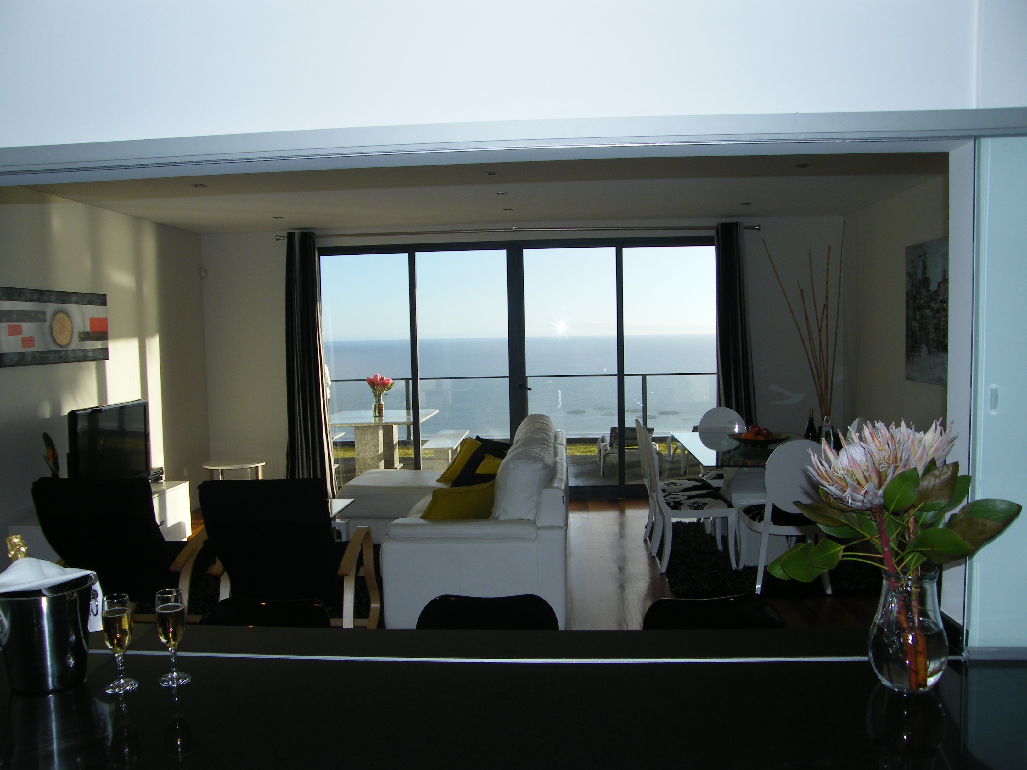 Der große, helle Wohn-Essbereich grenzt an die offene voll ausgestattete Küche mit (Frühstücks-)Bar. Durch große Fenster haben Sie einen umwerfenden Blick auf den Atlantik. SAT-TV, kostenloses WLAN, Radio/Video und ein Bücheranangebot sorgen für Unterhaltung.