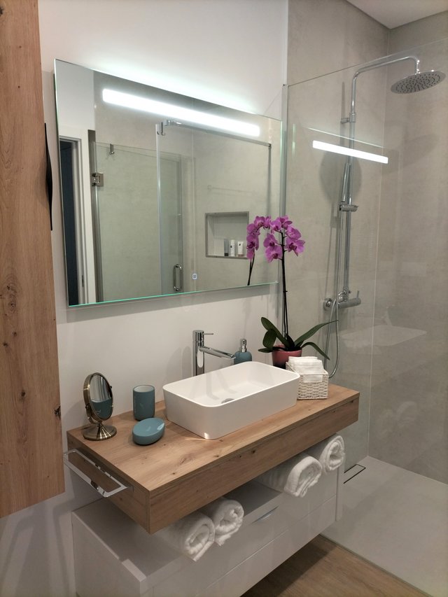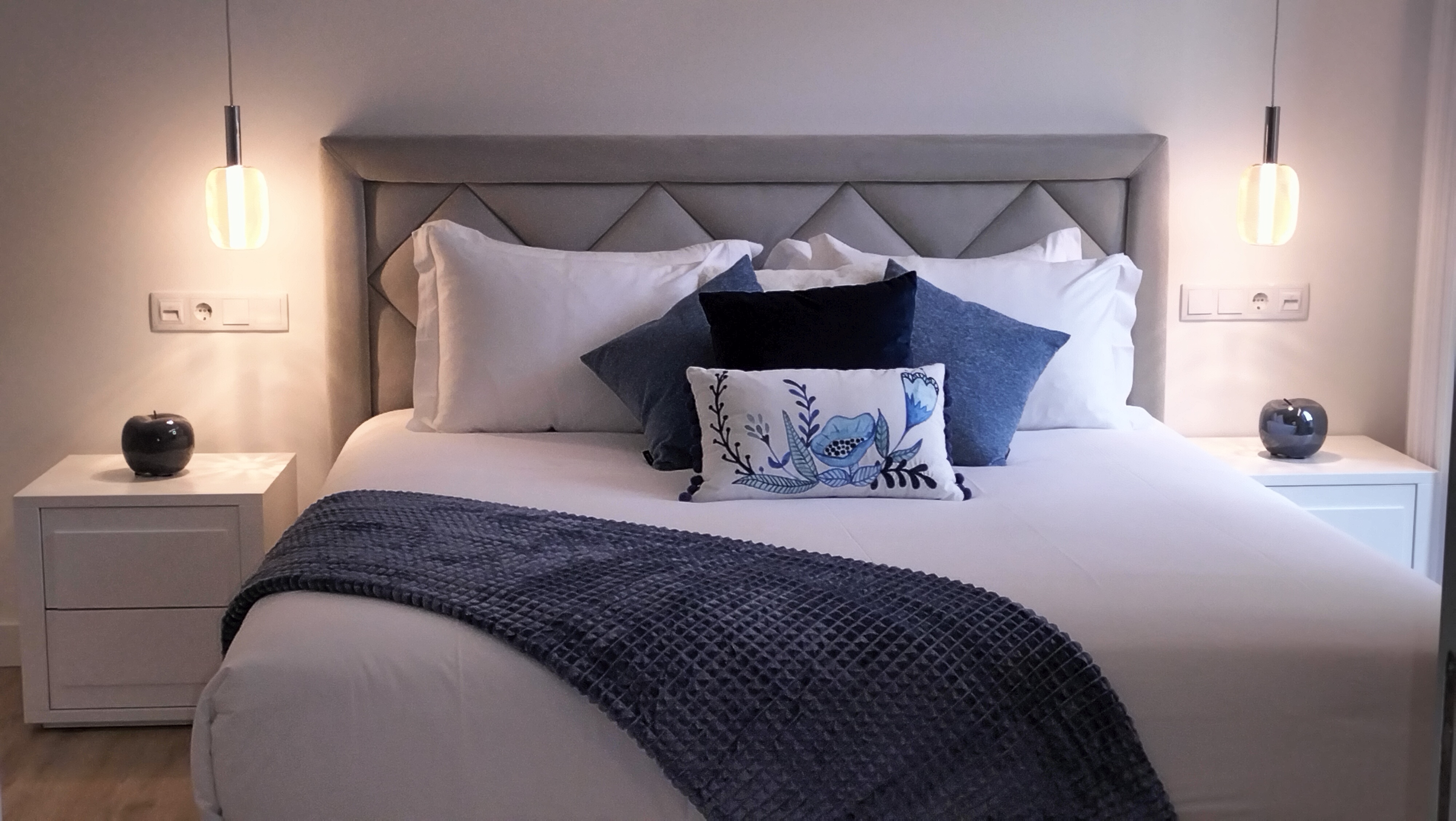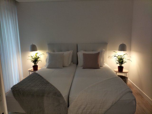 Die beiden Schlafzimmer (einmal mit separaten Betten je 90x200 cm, die zusammen stehen und einmal mit Kingsize-Bett 180x200 cm) verfügen jeweils ein Ensuite Bad mit Dusche/WC, Föhn und Bademäntel und bieten genügend Platz für bis zu 4 Personen.